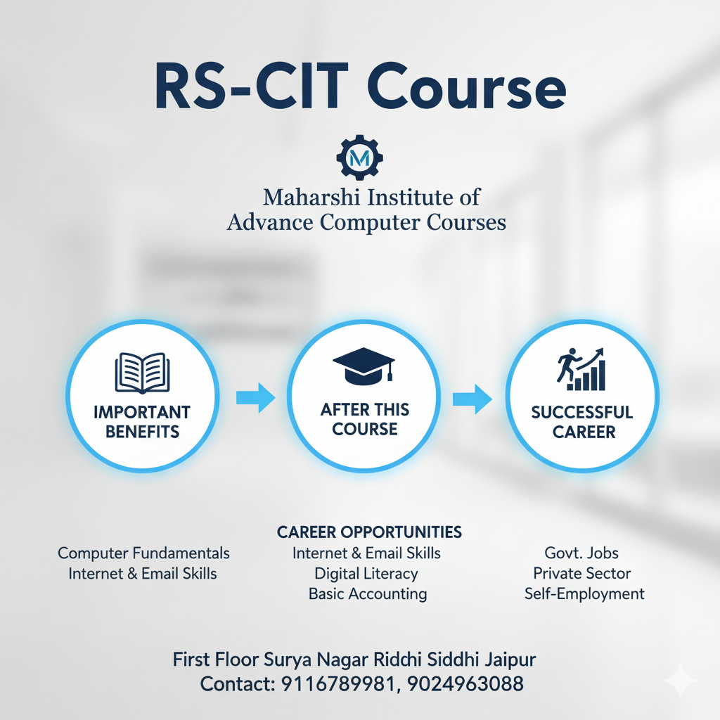 Welcome to Maharshi Institute - Your Gateway to RSCIT Success! Are you ready to embark on a transfo.... Welcome to Maharshi Institute - Your Gateway to RSCIT Success! Are you ready to embark on a transfo.... Welcome to Maharshi Institute - Your Gateway to RSCIT Success! Are you ready to embark on a transfo.... Welcome to Maharshi Institute - Your Gateway to RSCIT Success! Are you ready to embark on a transfo.... Welcome to Maharshi Institute - Your Gateway to RSCIT Success! Are you ready to embark on a transfo.... Welcome to Maharshi Institute - Your Gateway to RSCIT Success! Are you ready to embark on a transfo.... Welcome to Maharshi Institute - Your Gateway to RSCIT Success! Are you ready to embark on a transfo.... Welcome to Maharshi Institute - Your Gateway to RSCIT Success! Are you ready to embark on a transfo.... Welcome to Maharshi Institute - Your Gateway to RSCIT Success! Are you ready to embark on a transfo... Welcome to Maharshi Institute - Your Gateway to RSCIT Success! Are you ready to embark on a transformative journey in the world of computing? Look no further than Maharshi Institute, located conveniently at Plot 424 Surya Nagar, Gopal Pura Mode, Jaipur. We specialize in preparing individuals for the RSCIT (Rajasthan State Certificate in Information Technology) course, equipping them with essential digital literacy skills for today's dynamic job market. About RSCIT Course At Maharshi Institute, we offer comprehensive training for the RSCIT course, covering everything from basic computer knowledge to advanced IT concepts. Our curriculum is designed to ensure that students grasp fundamental computer operations, software applications, and internet usage, empowering them to navigate the digital landscape confidently. RSCIT Course Syllabus Our RSCIT course syllabus is carefully crafted to meet industry standards and align with the latest technological advancements. Students gain proficiency in Microsoft Office Suite (Word, Excel, PowerPoint), basics of computer hardware and software, internet fundamentals, and more. This holistic approach ensures a well-rounded understanding of essential IT concepts. RSCIT Course Eligibility Wondering if you're eligible to enroll? The RSCIT course is open to individuals of all backgrounds. Whether you're a student, professional, homemaker, or retiree looking to enhance your computer skills, our program is tailored to accommodate diverse learners. RSCIT Course Fees We believe in providing quality education at an affordable cost. Our RSCIT course fees are competitive and offer exceptional value for money. Contact us today at 9116789981, 9024963088, or 7378161093 to inquire about our fee structure and available payment options. RSCIT Course PDF Accessing study materials is now easier than ever! Maharshi Institute provides RSCIT course PDFs to registered students, allowing them to study at their own pace and convenience. Our digital resources complement classroom learning, ensuring comprehensive preparation for the RSCIT exam. RSCIT Course Online Can't attend in-person classes? No problem! We offer RSCIT courses online, enabling students to learn from anywhere. Our virtual classrooms facilitate interactive sessions, live lectures, and real-time doubt resolution, fostering an engaging learning experience. RSCIT Course Near Me Convenience matters! Maharshi Institute is centrally located in Jaipur, making it easily accessible from various neighborhoods. If you're searching for an RSCIT course near you, look no further than our institute at Gopal Pura Mode. Why Choose Maharshi Institute? Experienced Faculty: Learn from qualified instructors with extensive industry experience. Practical Learning: Gain hands-on experience through workshops and simulated projects. Placement Assistance: Avail of job placement support and career guidance post-completion. State-of-the-Art Facilities: Study in a modern learning environment equipped with the latest technology. Enroll Today! Kickstart your journey towards IT proficiency with Maharshi Institute. Visit our website www.maharshiclasses.com to learn more about our RSCIT course and enrollment process. For personalized assistance, contact us at 9116789981, 9024963088, or 7378161093. Don't miss this opportunity to enhance your computer skills and unlock new career prospects! Join Maharshi Institute - Where Learning Meets Innovation in IT Education. RSCIT rscit course pdf rscit course in jaipur Rscit course syllabus Rscit course online Rscit course fees rscit course near me Rscit course free rscit course in hindi Rscfa course in jaipur fees Rscfa course in jaipur pdf rscfa free course 2023 Free rscfa course in jaipur rs-cfa course details in hindi rscfa course benefits in hindi rscfa exam paper rscfa course syllabus in hindi top 10 english spoken classes in jaipur spoken english classes in jaipur fees best english spoken classes in jaipur online english spoken classes in jaipur Spoken english course in jaipur fees best english coaching in jaipur for competitive exams Spoken english course in jaipur for beginners Best spoken english course in jaipur RSCIT Course Near Me RSCIT Course in Gopalpura Jaipur RSCIT Course in Mahesh Nagar RSCIT Course in Mansarovar RSCIT Course in Jaipur RSCIT Course in Vaishali Nagar RSCIT Course in Raja Park RSCIT Course in Jagatpura RSCIT Course in Kalwar Road RSCIT Course in Civil Lines RSCIT Course in C Scheme RSCIT Course in Malviya Nagar RSCIT Course in Ajmer Road RSCIT Course in Jhotwara RSCIT Course in Tonk Road RSCIT Course in Sitapura RSCIT Course in VKI RSCIT Course in Murlipura RSCIT Course in Riddhi siddhi RSCIT Course in Sodala RSCIT Course in Shyam Nagar RSCIT Course in Sindhi Camp RSCIT Course in Shastri Nagar RSCIT Course in Choura Rasta RSCIT Course in 22 Godam RSCIT Course in Muhana Mandi RSCIT Course in Sanganer RSCIT Course in Airport RSCIT Course in Amer RSCIT Course in Ramgarh Mod RSCIT Course in dadi ka fatak RSCIT Course in JP Fatak RSCIT Course in MI Road RSCIT Course